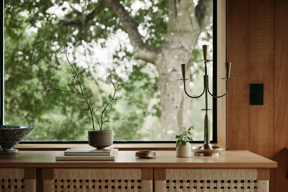 Originally built in 1972 by architect John Haag as part of The Sea Ranch’s visionary midcentury modern enclave, the house retains a deep connection to place. The renovation is guided by reverence for the original architecture. Millwork is refreshed, a window seat tucks into the kitchen and the bathrooms are refreshed with restraint. Intentional gestures like the ceramic gingham tile, curated textiles and furnishings like a Roger Capron cocktail table and Alvar Aalto dining chairs introduce color and character without disturbing the calm. At The Sea Ranch, life moves with the tides.